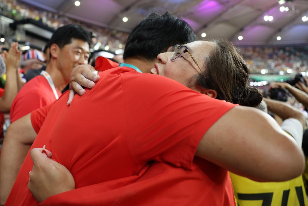 “这场比赛竞技水平非常高,赛前我们预测67米就能拿牌,但是冠亚军都超越了69米,冯彬的68米才刚上领奖台。”李维宾说,“这一场,冯彬先赢后输然后又赢了回来,说明给她压力她真能扛得住,是敢打敢拼的比赛作风。”