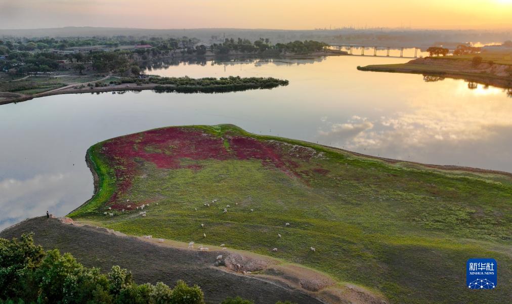 晨曦中宁静的芦河(8月20日摄,无人机照片)。