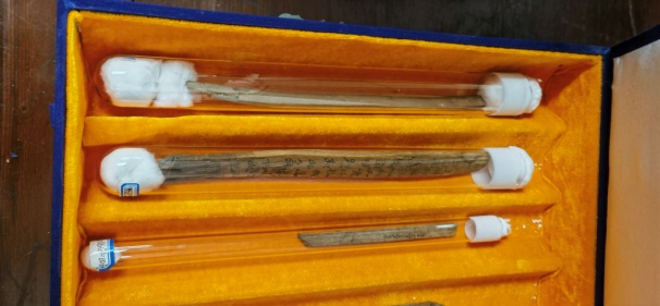 “在包装方面,此次包装衬垫材料均符合运输标准,材质本身对文物无害、无污染,防潮防尘,坚固耐用,有利于保护文物安全。”徐睿说,简牍类文物转运时,需要在做好包装衬垫后,将简牍放入玻璃试管中,再将玻璃试管根据长短放进一个个锦盒,随后把锦盒分层放入纸箱,纸箱内设有凹槽,保证运输时试管在纸箱内不会晃动。