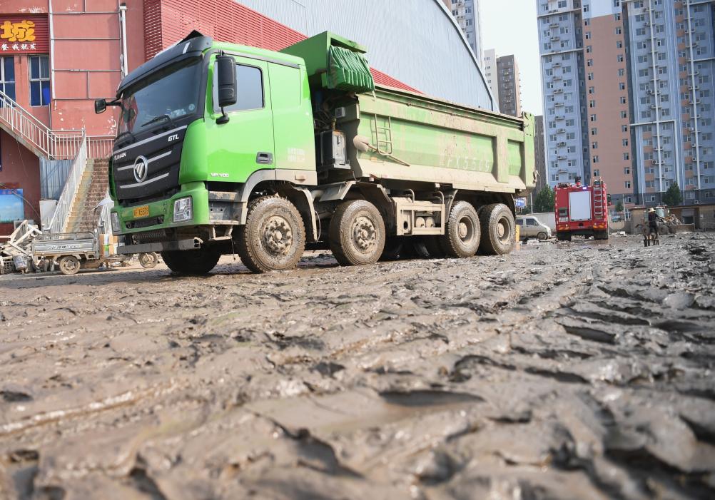 洪水退去后的涿州大石桥农副产品批发市场(8月9日摄)。