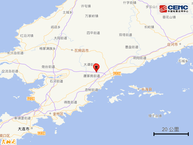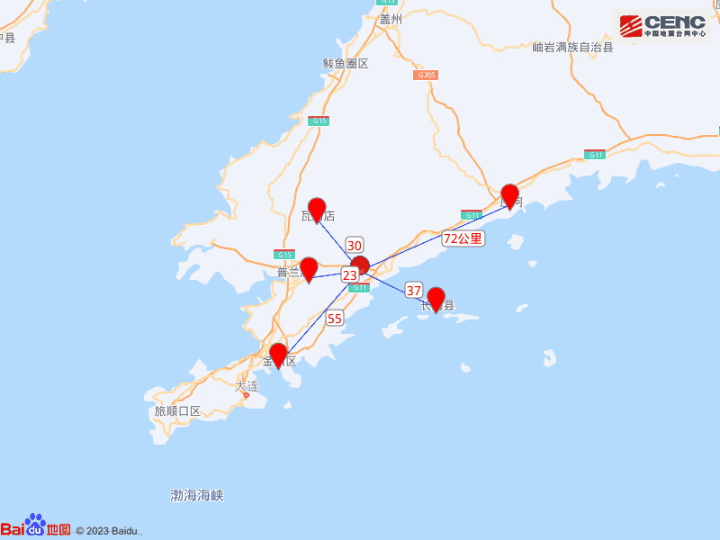 周边县城:震中距普兰店区23公里、距瓦房店市30公里、距长海县37公里、距金州区55公里、距庄河市72公里,距大连市76公里,距沈阳市289公里。