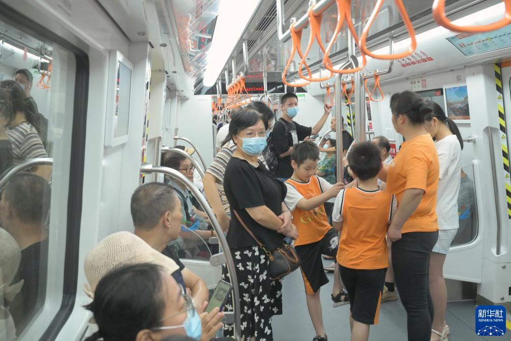 8月23日,市民乘坐福州地铁4号线出行。