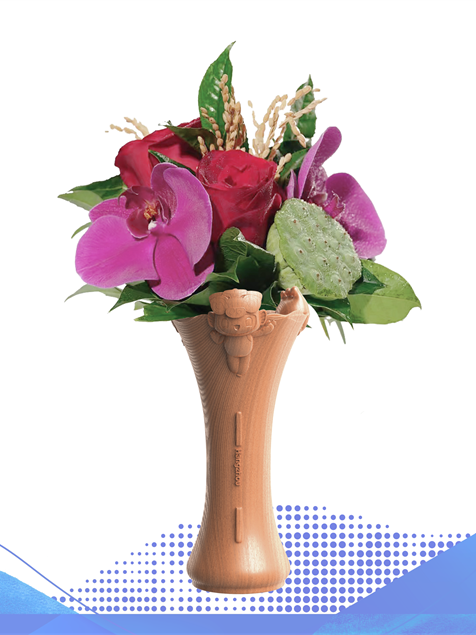 花材包括寓意丰收和成果的稻穗、莲蓬