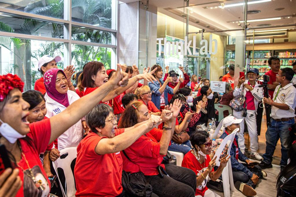 8月22日,民众在泰国曼谷庆祝赛塔·他威信当选新一任泰国总理。新华社记者王腾摄