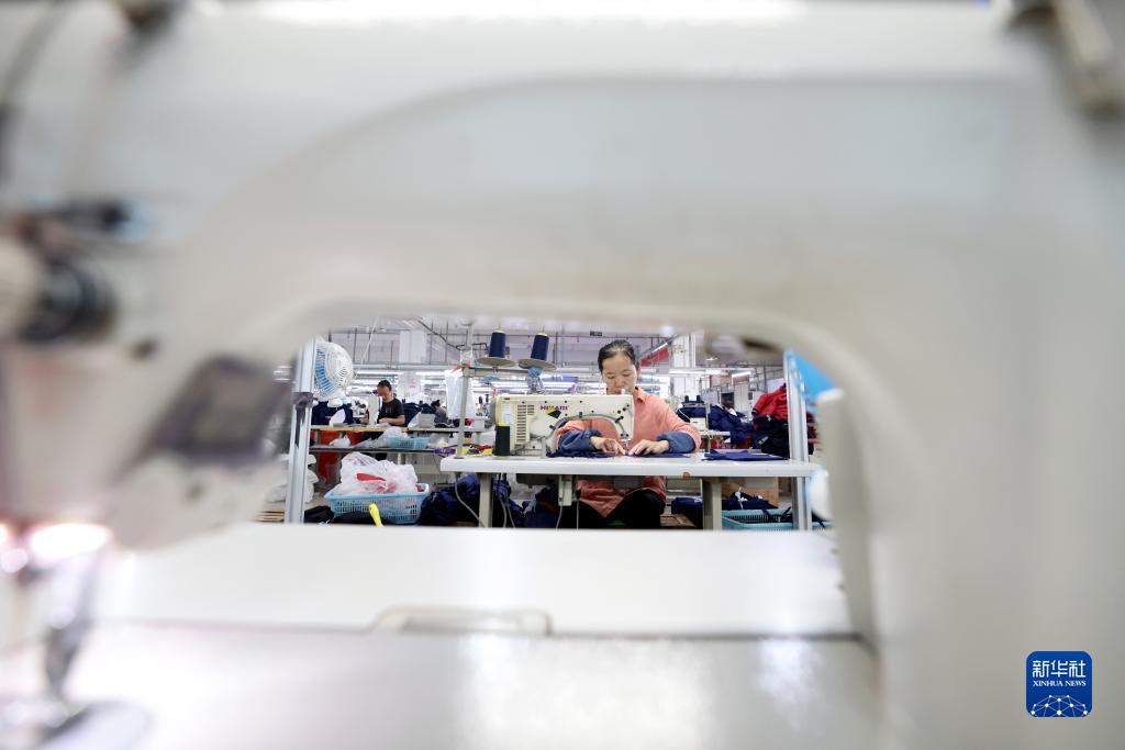8月24日,在福建省福州市仓山区一家制衣企业,工人生产服装产品。