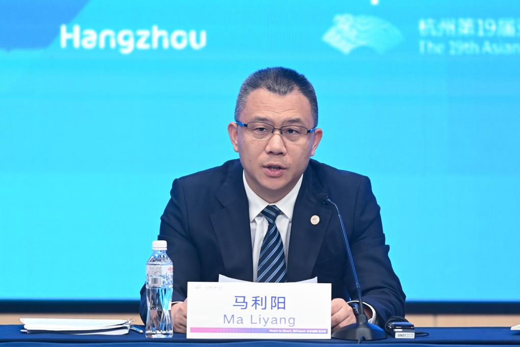 8月24日,杭州亚组委环境保障部部长、杭州市生态环境局局长马利阳介绍杭州亚运会碳中和工作相关情况。新华社记者 黄宗治 摄