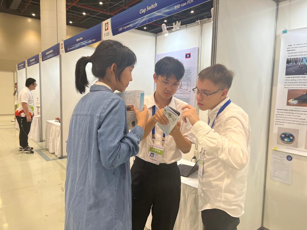 来自江西的乐海滨已经和展台左邻右舍的两位同学十分熟悉,“我是抱着交朋友的想法来参加比赛的。这几天接触到国内外很多优秀的同学们,他们给了我很多启发和新的想法,让我打开了思路,从多个角度看待问题。”