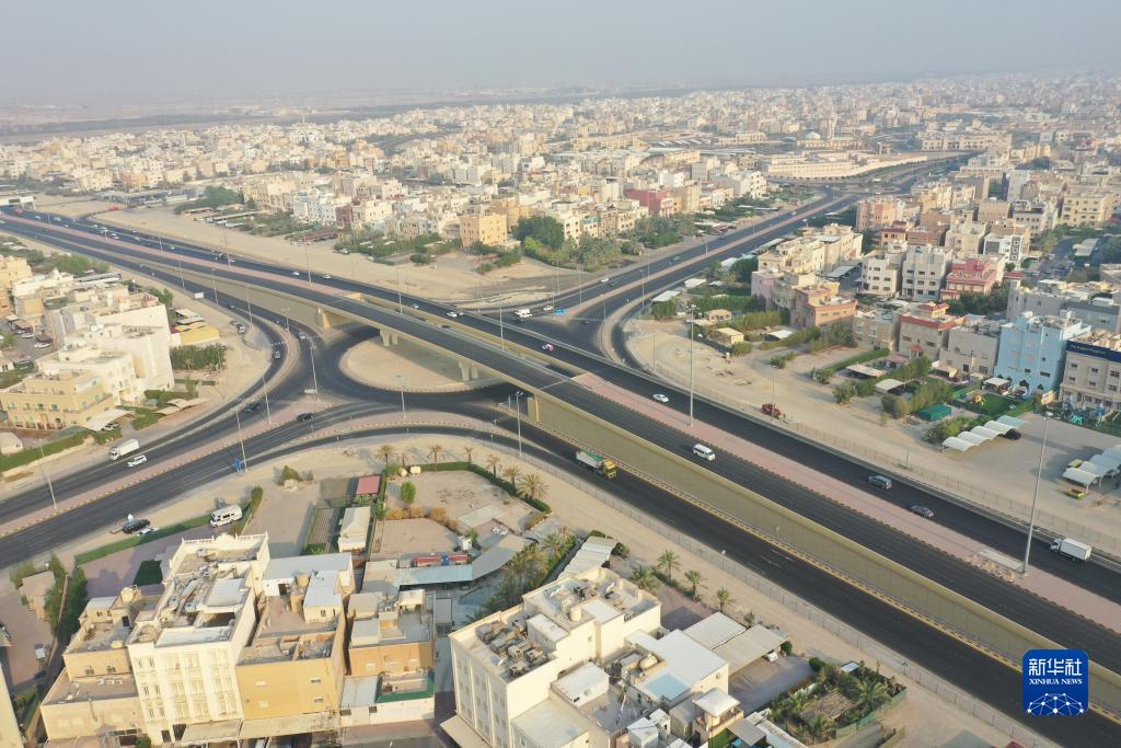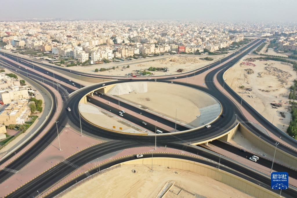 这是在科威特大穆巴拉克省航拍的七环路项目的一座立交(8月22日摄)。新华社发(李志南摄)