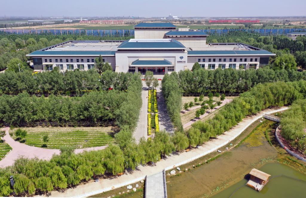 这是绿树环绕下的甘肃省武威重离子中心(2023年6月16日摄,无人机照片)。新华社记者 郭刚 摄