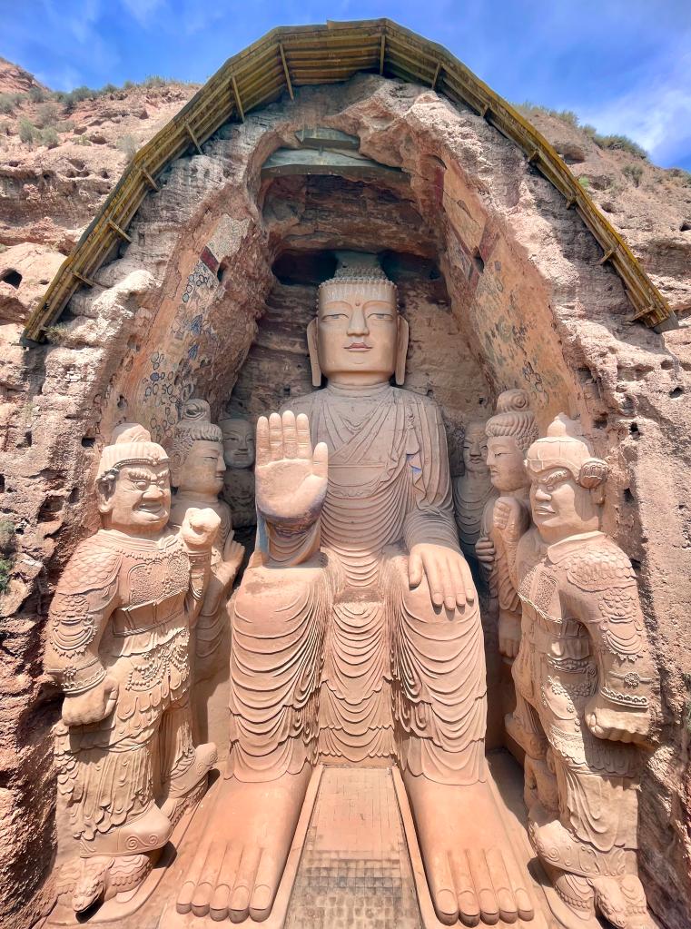 这是位于黄羊河水库之滨的“石窟鼻祖”——甘肃省武威市天梯山石窟(2023年6月14日摄)。新华社记者 郭刚 摄