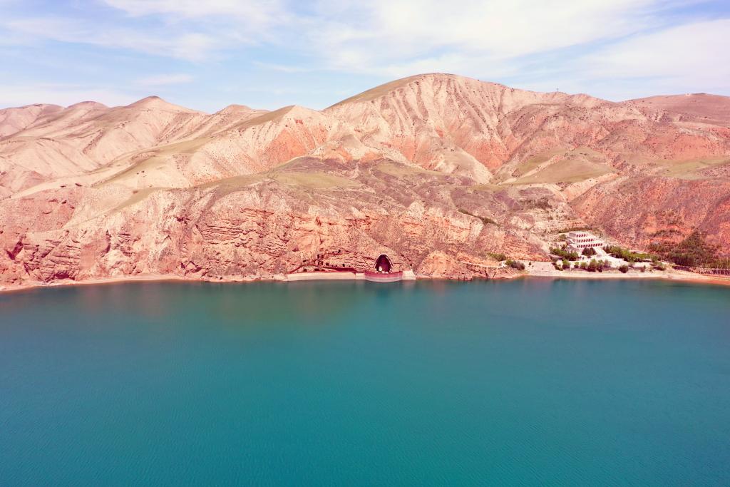 这是位于黄羊河水库之滨的“石窟鼻祖”——甘肃省武威市天梯山石窟(2023年6月14日摄,无人机照片)。新华社记者 郭刚 摄