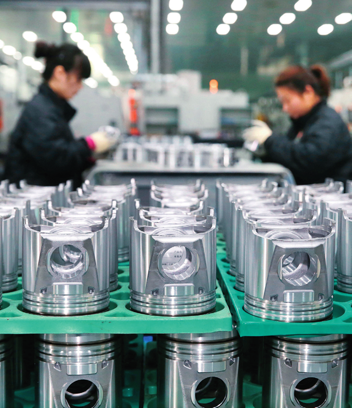 在安徽省淮北高新技术产业开发区一家陶铝汽车部件生产企业,工人在生产车间内工作(2023 年 4 月 25 日摄)万善朝摄 / 本刊