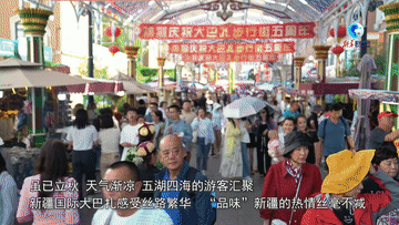 欢快的歌舞,香甜的瓜果,热腾腾的烤全羊,光彩照人的民族手工艺品……大巴扎的人气如烈日般火热,充满新疆特色的旅游产品、非遗文创、各色美食让人们流连忘返。