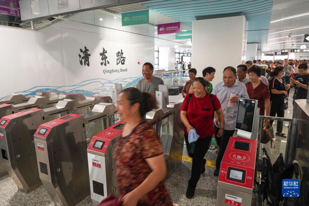 8月26日,在温州乐清市清东路站,体验市民通过检票口。新华社发(苏巧将 摄)