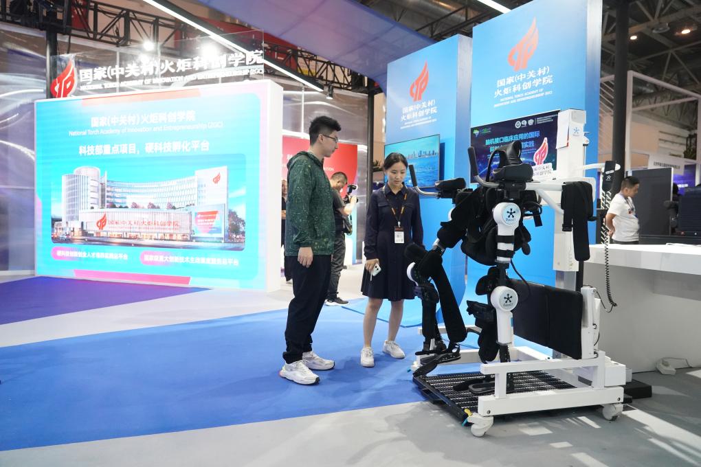 走进本届峰会展览展示区的国家(中关村)火炬科创学院展位,脑机接口临床应用创新成果映入眼帘。两只机械腿在脑机接口设备的指挥下前后摆动,这一创新技术有望为残疾患者提供自由行走的可能。
