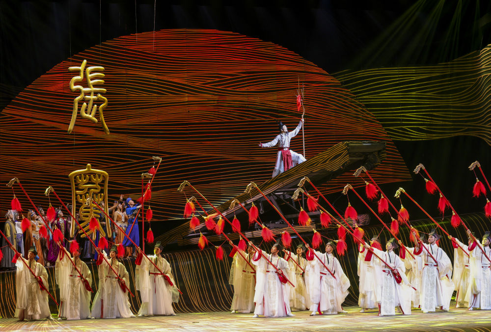 演员在乌鲁木齐文化中心大剧院表演舞剧《张骞》(2021年10月27日摄)。新华社记者 王菲 摄