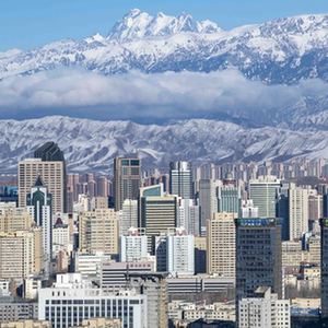 天山脚下的乌鲁木齐市城区一角。新华社记者 胡虎虎 摄