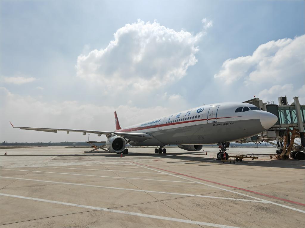 27日上午,银川直飞迪拜航班在停机坪等待起飞。新华社记者许晋豫 摄