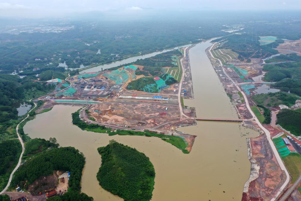 正在施工建设中的平陆运河青年枢纽(8月1日摄)。新华社记者陆波岸摄