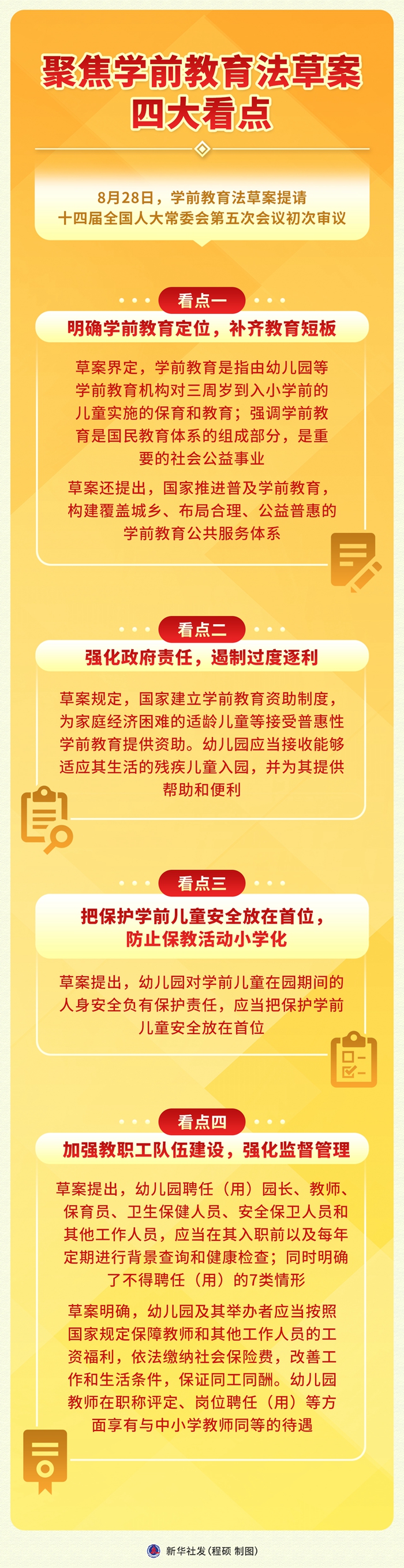 新华社北京8月28日电 题:聚焦学前教育法草案四大看点