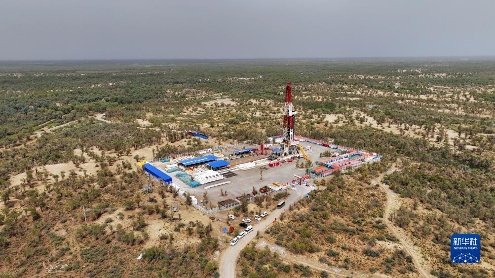 8月21日拍摄的中国石化塔里木盆地“深地工程”跃进3-3XC油气井。该井设计井深9472米,截至8月28日,钻探深度已达8471米(无人机照片)。