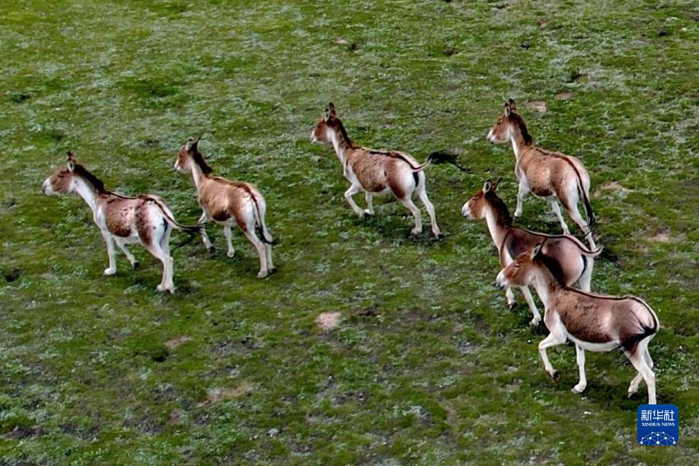 长江源区的藏野驴(7月26日摄,无人机照片)。 新华社记者 刘诗平 摄