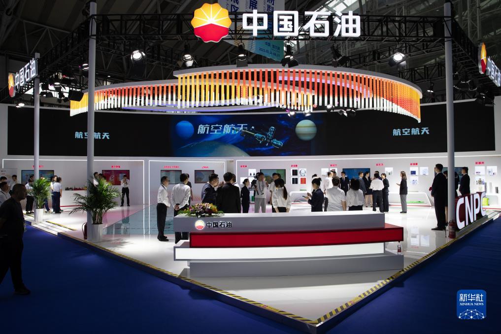 8月29日,参会者在中国石油天然气集团公司展厅参观。