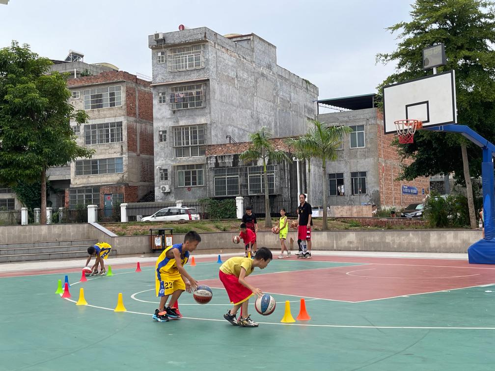 图为广西南宁市邕宁区那楼镇三凝广场上,几个孩子正在进行篮球训练。新华社记者 聂新宇 摄