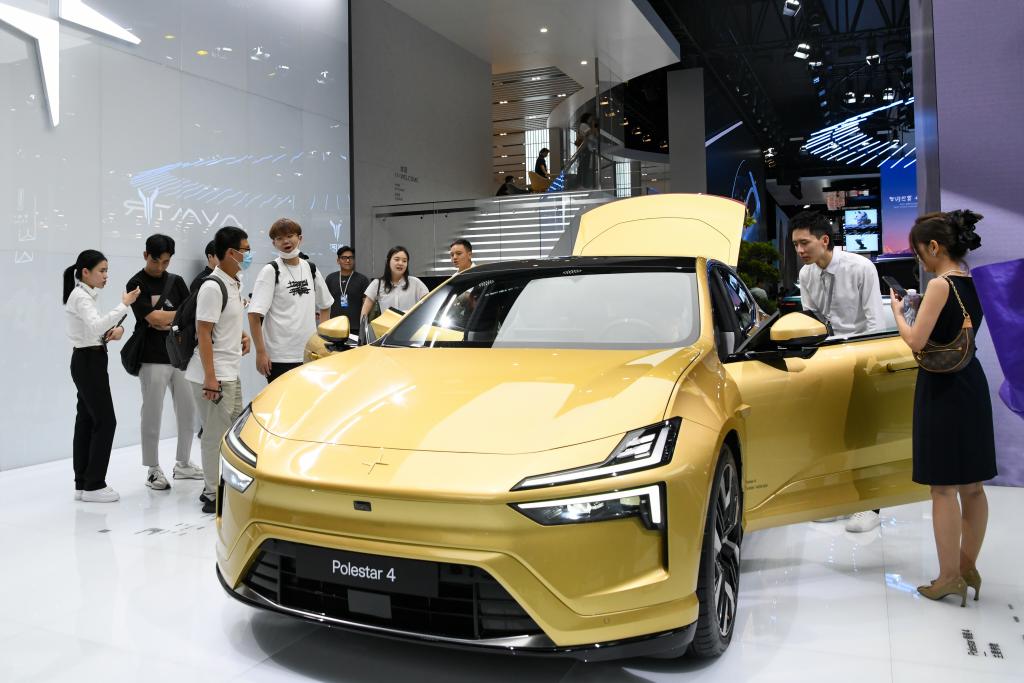 8月25日在第二十六届成都国际汽车展览会现场拍摄的极星展台。新华社记者 唐文豪 摄