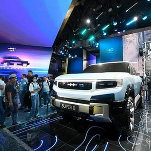 8月25日,在第二十六届成都国际汽车展览会现场拍摄的比亚迪方程豹展台。新华社记者 唐文豪 摄