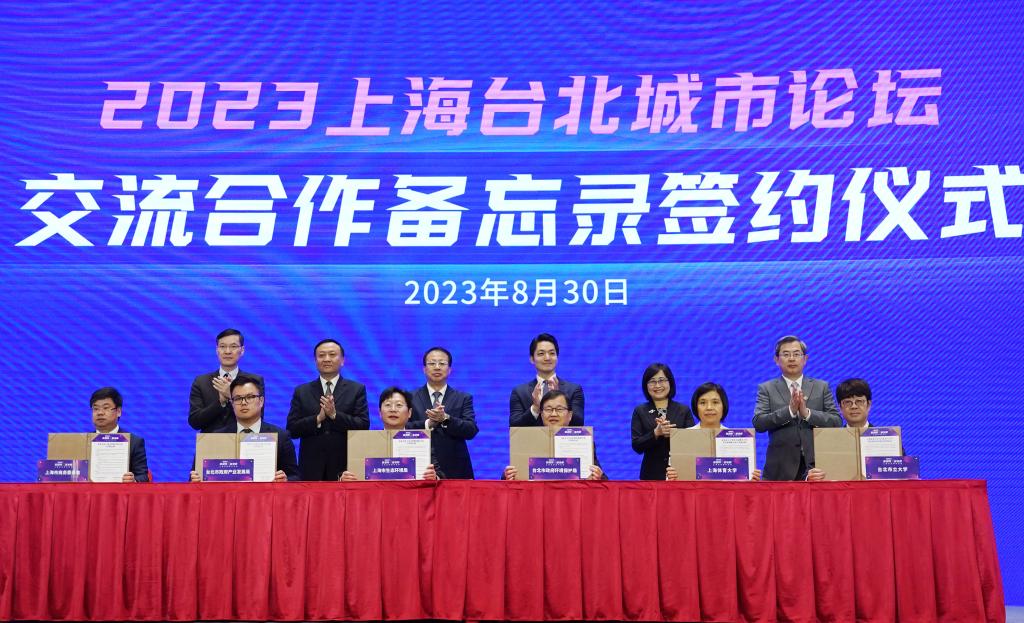 8月30日,在论坛现场,上海市与台北市签署会展产业、低碳、羽毛球运动3项交流合作备忘录。新华社记者 刘颖 摄