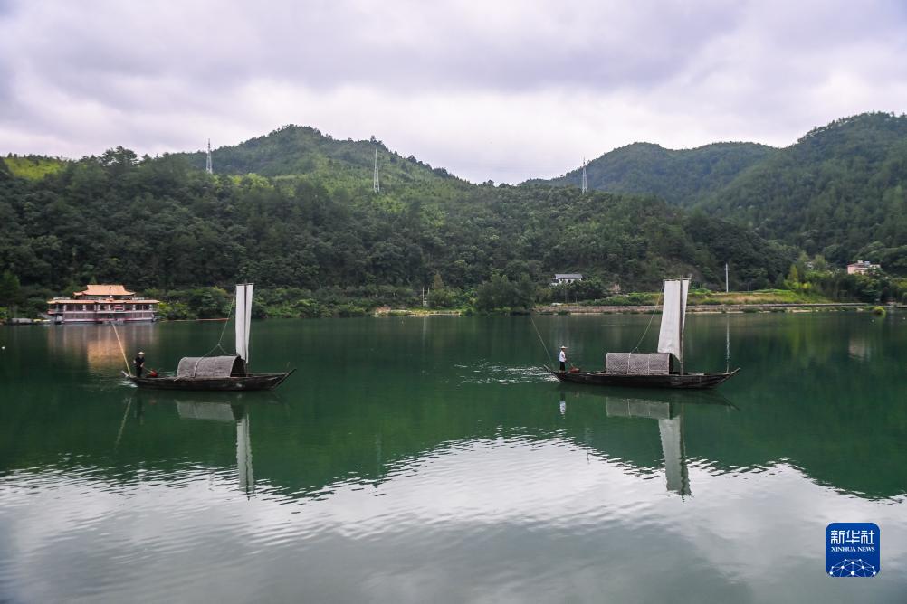 8月30日,传统的舴艋帆船在紧水滩镇石浦村前的江面上缓缓驶过。石浦村位于云和县县城北部,该村地理位置优越,自然风光秀丽,是省级重点历史文化古村落保护村。