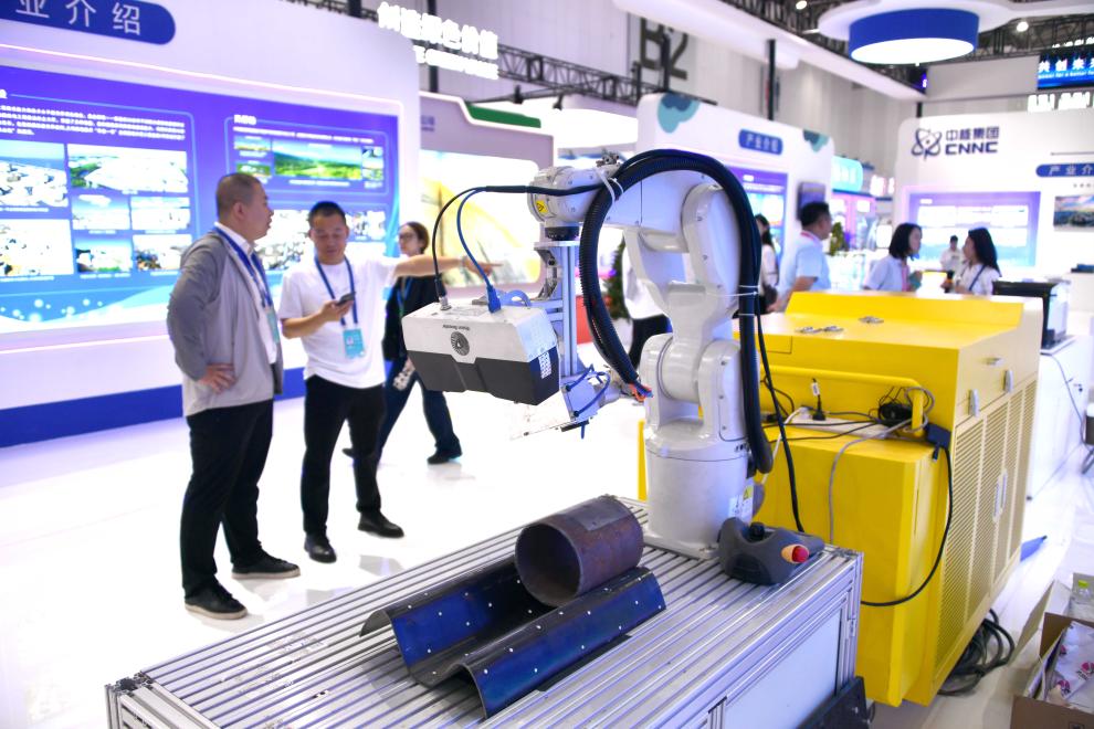在2023绿色低碳高质量发展大会装备展上,一家公司展出了高功率激光应用设备。新华社记者 徐速绘 摄