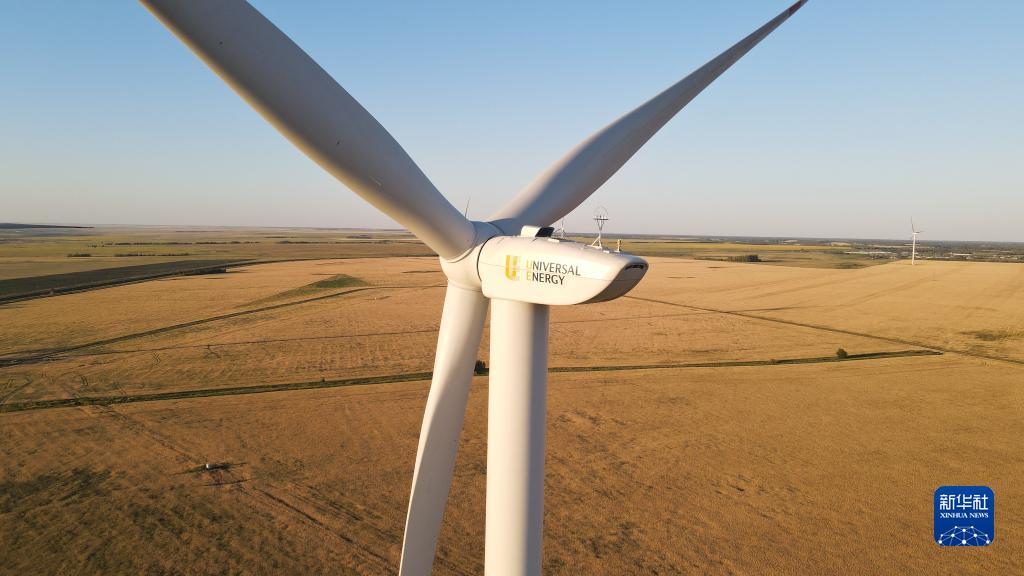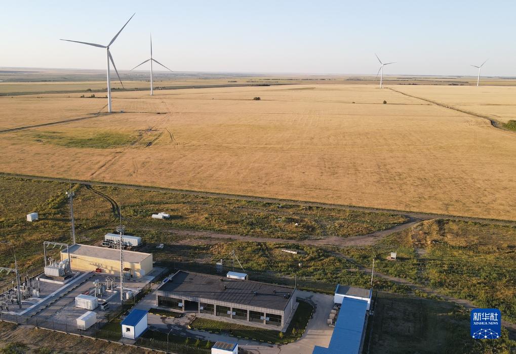 哈萨克斯坦科斯塔奈州50兆瓦风电项目(2022年8月14日摄,无人机照片)。新华社发