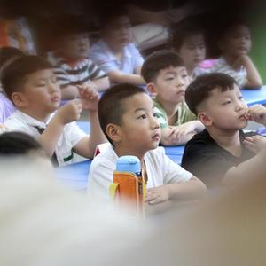 8月31日,在西安市鄠邑区新区小学,学生在老师的指导下进行应急演练。