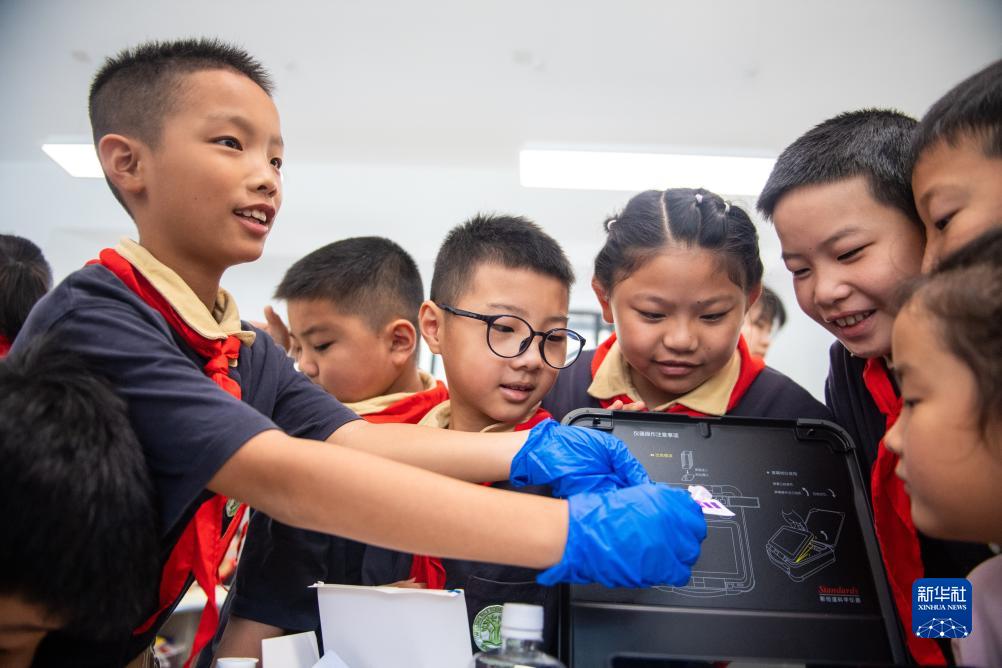 8月31日,湖南省常德市市场监督管理局在常德市武陵区第三小学开展关于食品安全的“开学第一课”。这是学生分享食品安全快速检测实验结果。