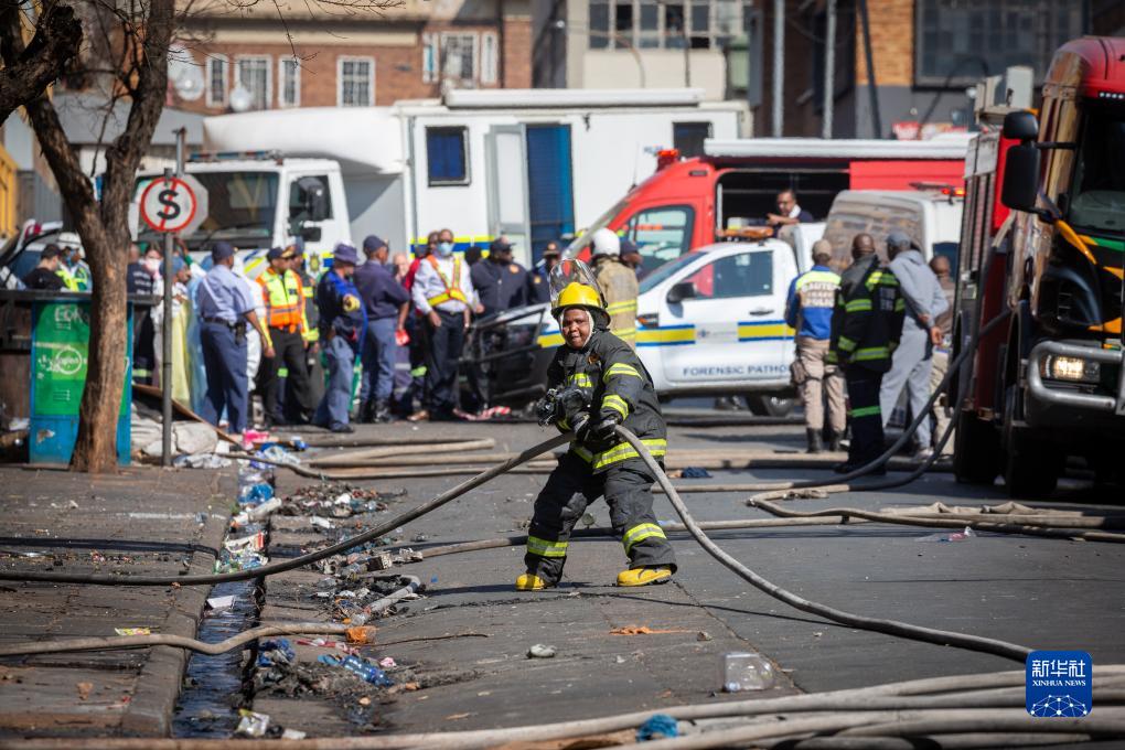 8月31日,在南非约翰内斯堡,消防员在火灾事故现场救援。