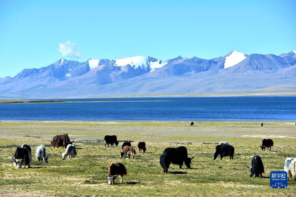 西藏阿里地区的打加错地处山间盆地,盆地外围为海拔5200米以上的高山,部分山顶终年积雪。雪山下的打加错,动物成群、美景如画。
