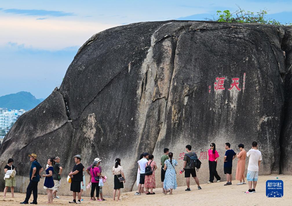 8月28日,游客在天涯海角游览区游玩。