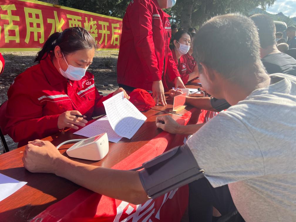 在龙江森工集团大海林林业局有限公司,医务人员马晶正在为受灾居民检查身体。“来到受灾林场,我们先是入户查看消杀情况以及居民喝的饮用水,再就是为居民诊疗。”马晶是黑龙江省森工总医院护理部主任,作为防汛应急医疗队成员之一,奔赴受灾林区。马晶说,这些天,她为林区居民发放了应急药品、消毒药剂以及部分生活物资。