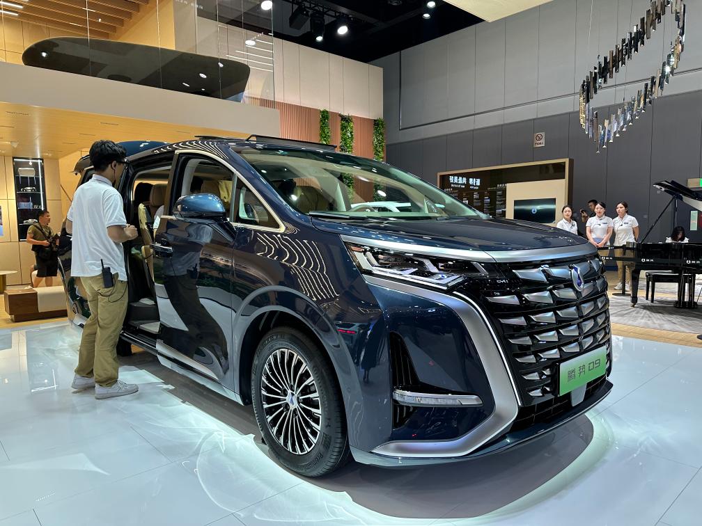 2023年8月25日,参观者在成都车展上体验新能源MPV车型腾势D9。新华社记者 薛晨 摄