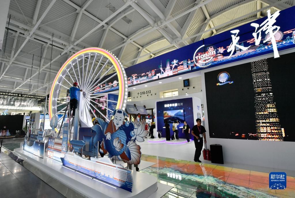 8月31日,在国家会展中心(天津),工作人员布置天津展区。