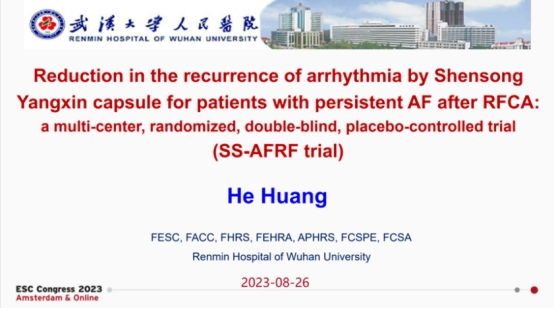 日前,在荷兰阿姆斯特丹召开的国际心血管领域顶级学术会议——欧洲心脏病学会年会(ESC)上,中国武汉大学人民医院黄鹤教授团队公布了一项新研究,该研究显示,在标准治疗基础上加用参松养心胶囊,能够显著降低射频消融术后房颤复发率,并显著提高患者生活质量,为射频消融术后的房颤患者预后提供了一种新治疗策略。
