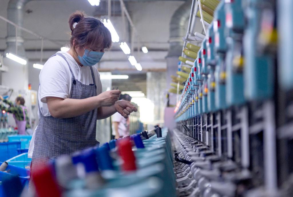 黑龙江穆棱一家亚麻纺织企业的工人进行生产作业。新华社记者 谢剑飞 摄
