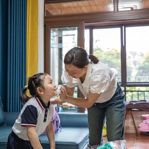 9月1日,在重庆市九龙坡区,妈妈为吃完早餐的豆豆擦嘴。