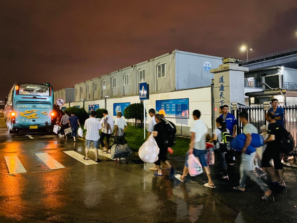 台风来临前,深中通道工程施工点撤离人员。(广东交通集团供图)
