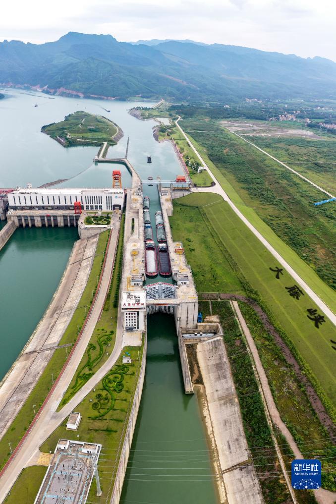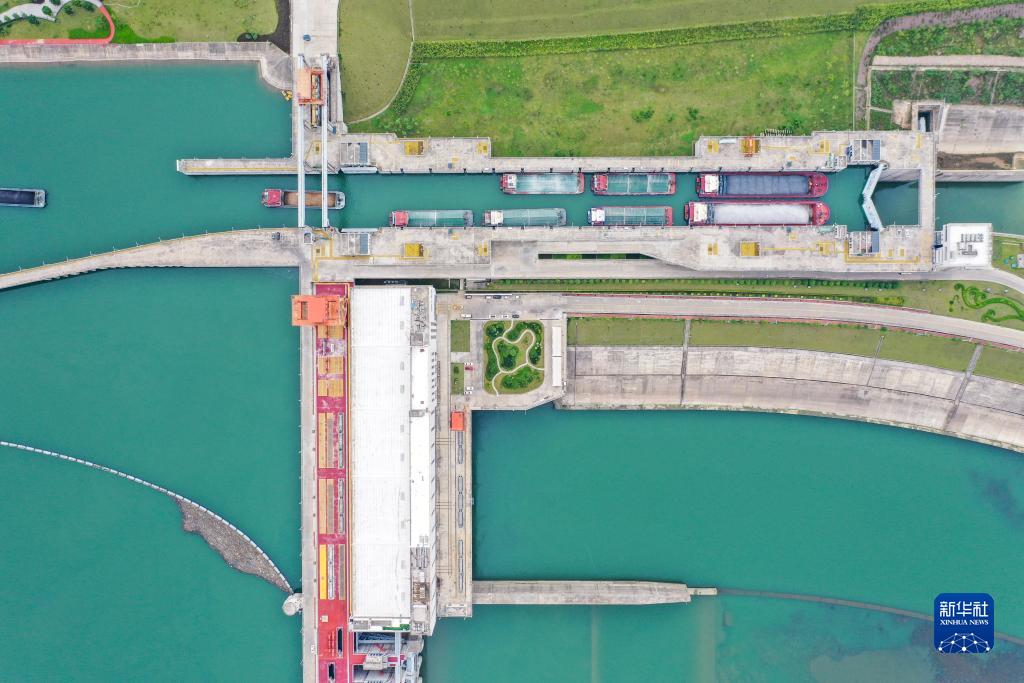 9月2日拍摄的广西大藤峡水利枢纽船闸(无人机照片)。新华社记者 曹祎铭 摄