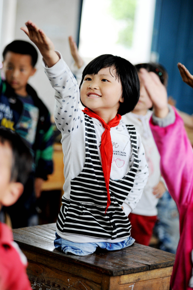 2013年5月15日,在江西省德兴市黄柏乡尚和小学,蒋张子怡正在为“六一”国际儿童节排练节目。新华社发 (卓忠伟摄)
