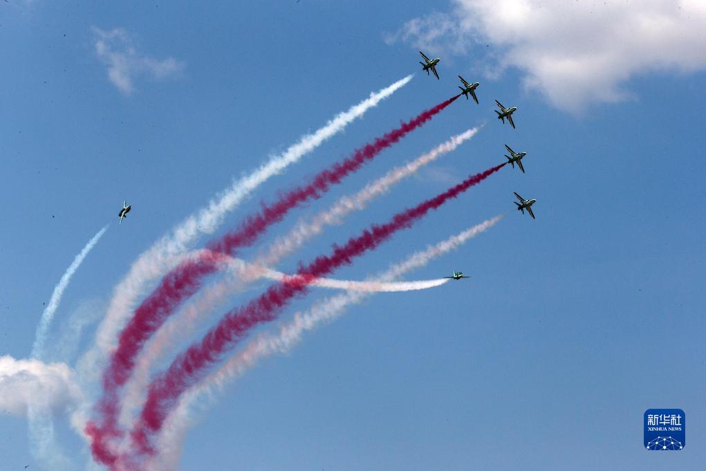 9月2日,在希腊塔纳格拉空军基地的雅典飞行周上,来自沙特阿拉伯的飞行表演队进行表演。