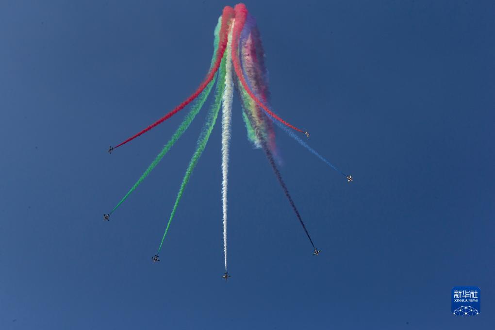 9月2日,在希腊塔纳格拉空军基地的雅典飞行周上,来自阿联酋的飞行表演队进行表演。